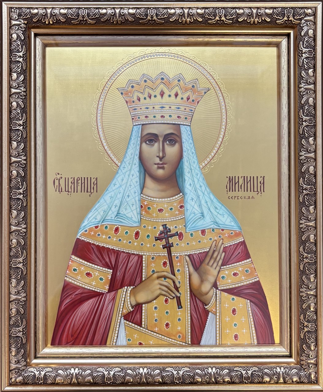 Икона Святая Милица, размер 22*28 см, липа, темпера, золото сусальное, киот.  Выполнена на заказ.