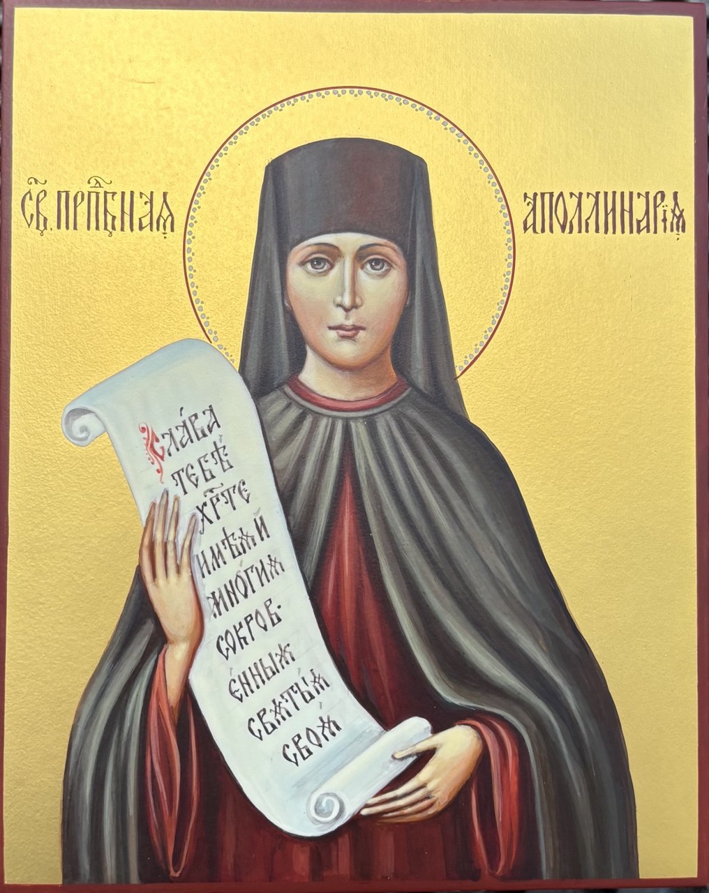 Размер 18*22 см., липа, темпера. Икона Святая Преподобная Аполлинария.